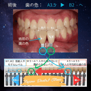 1回の施術で歯の明るさが、A3.5 から B2 まで9トーンも明るくなりました!