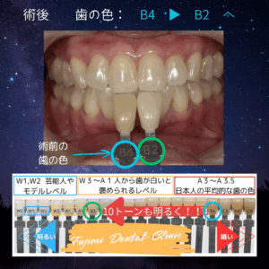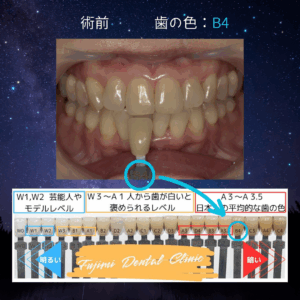 オフィスホワイトニングの術前の歯の明るさは B4