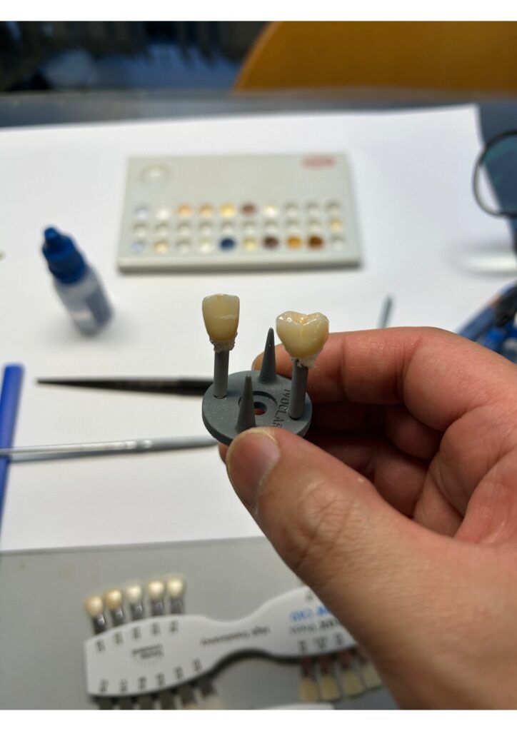 講義を受け、茶色や白色などの材料を用いて、天然の歯の色に近づけられるようにする実習を受けて来ました。