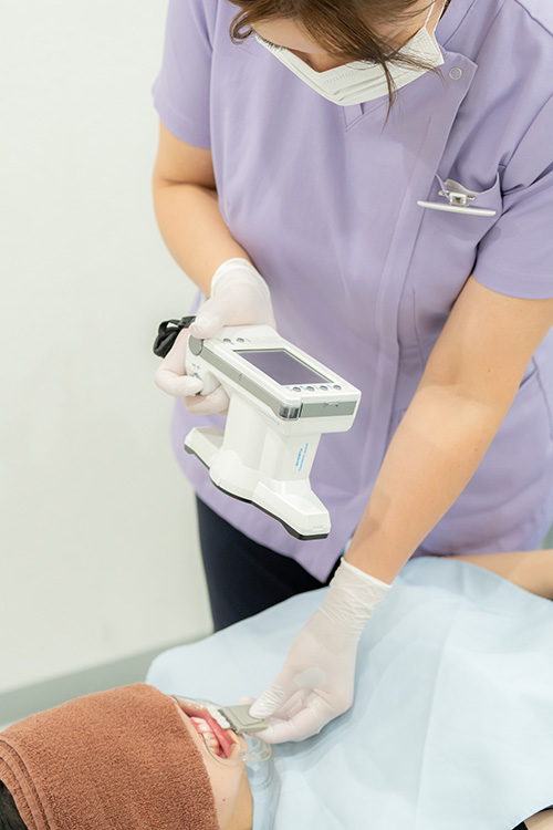 施術部位にむし歯・ひび割れ・重度の歯周病がないかのチェックを行います。